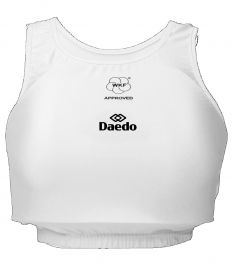 Protector De Pecho Femenino, WKF Approved. Protector de competición homologado por la RFEK / WKF. Color blanco. Se compone de un top y un plástico protecto. Lycra y Plástico. Todas tallas disponibles (XS, S, M, L, XL).